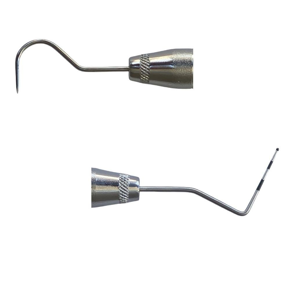 The Explorer with Screening Probe – Hollow Handle is designed for effective oral examination and caries detection. The dual-ended design combines a sharp explorer tip for tactile detection of caries, calculus, and enamel defects with a screening probe for periodontal assessment.