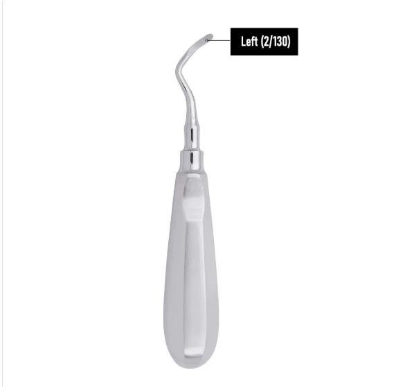 It designed to loosen and elevate roots or fractured tooth fragments prior to extraction. Its uniquely curved left-oriented blade provides excellent access to narrow or hard-to-reach areas, allowing clinicians to apply controlled leverage with minimal trauma to surrounding tissues.